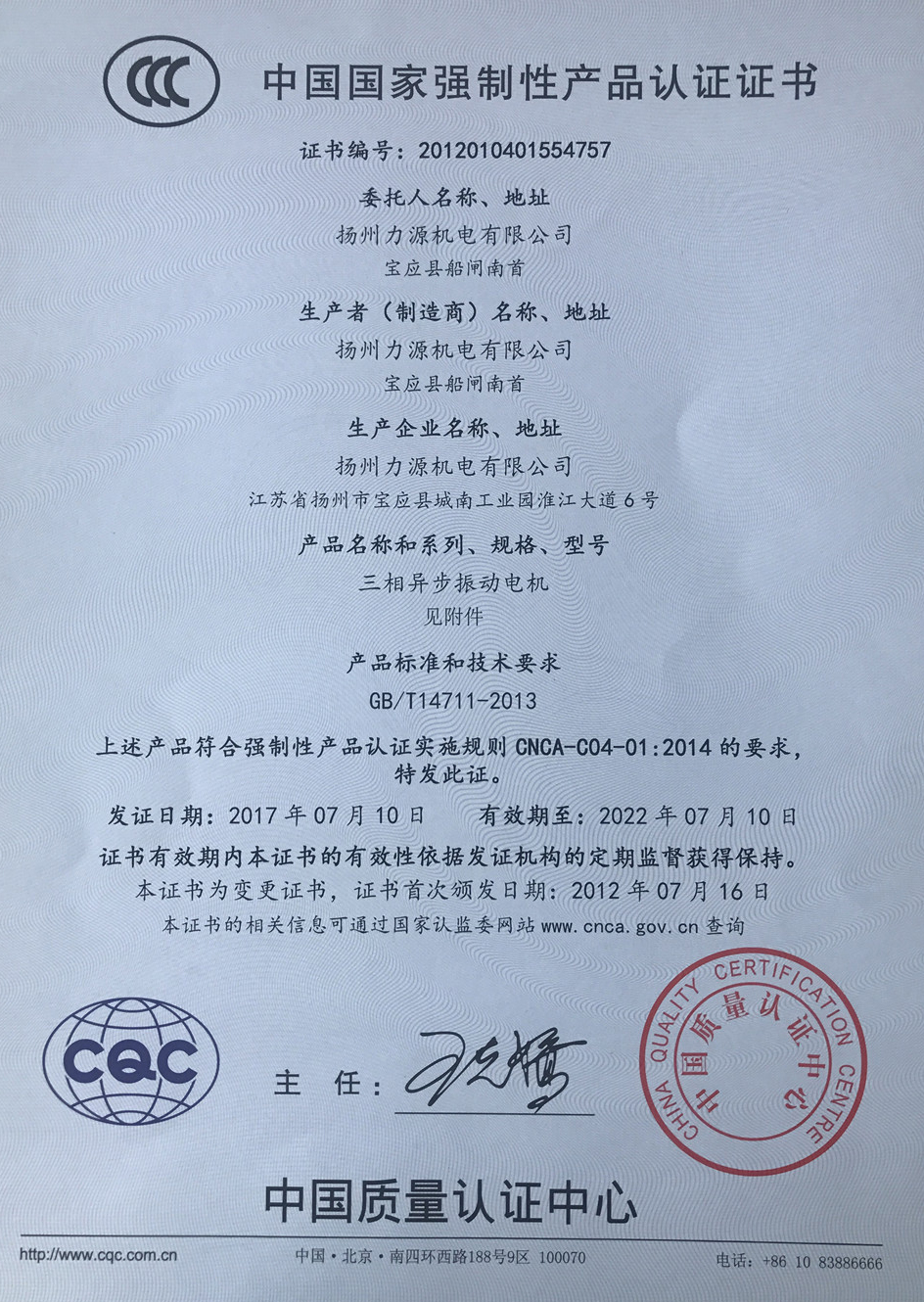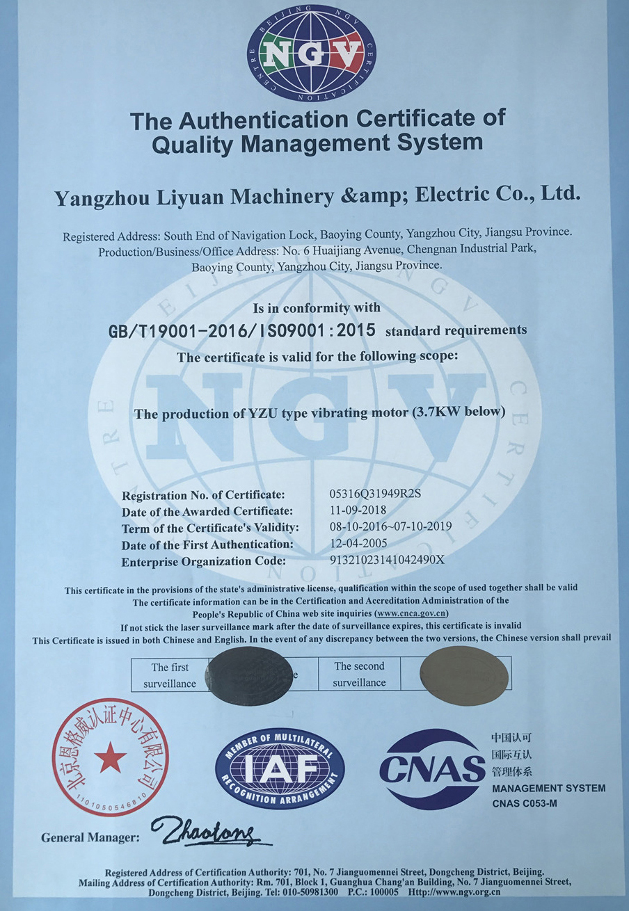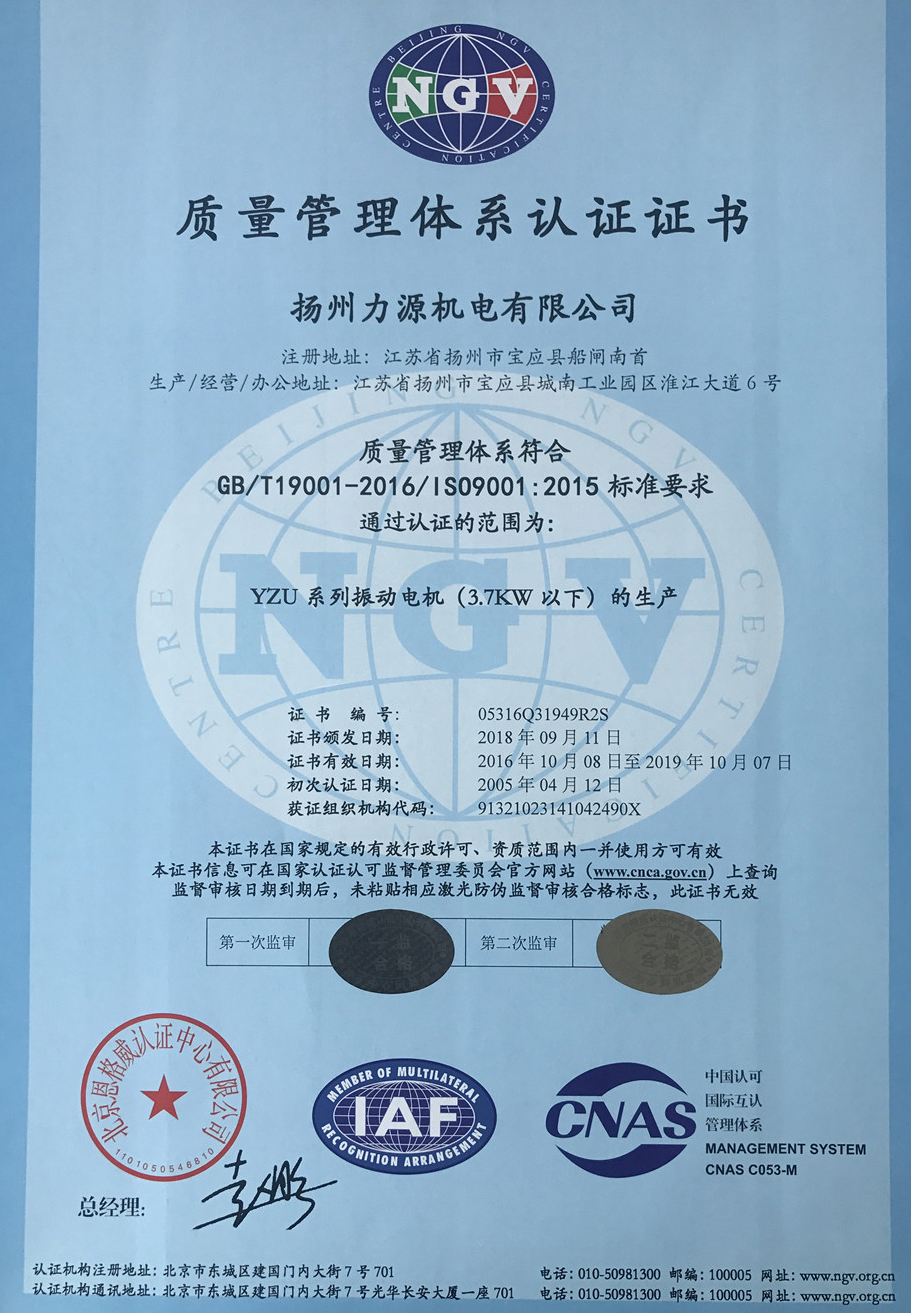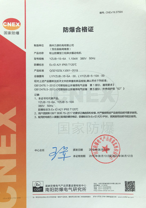 公司制造的振動機電產品,節能環保,符合GB/T19001-2008/ISO9001-- 2008質量管理體系標準,2012年通過國家3C強制性產認證,2016年取得了歐 洲CE認證證書。產品銷往全國各地,是國家中儲糧定點廠家的配套單位,是橡 塑、礦山、化工、糧機精選機械行業配套公認品牌。